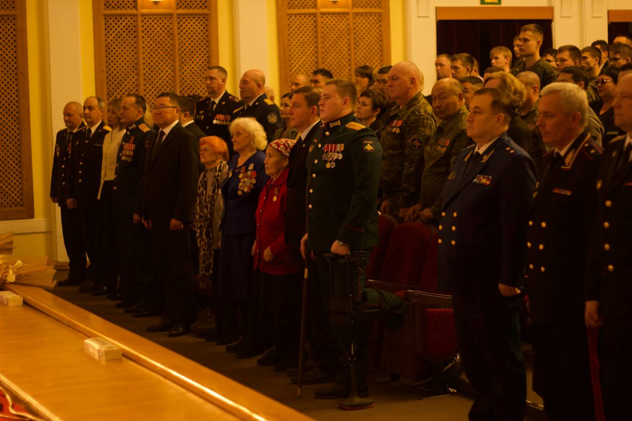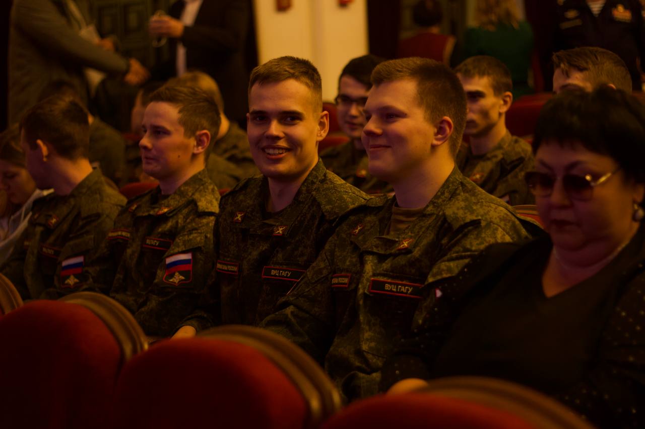 Вчера и.о. ректора ГАГУ Евгений Павлов, первый проректор вуза Наталья Гусельникова, курсанты и преподаватели ВУЦ приняли участие в торжественном мероприятии, посвященном Дню защитника Отечества и Году защитника Отечества, которое прошло в Национальном драматическом театре им. П.В. Кучияка.