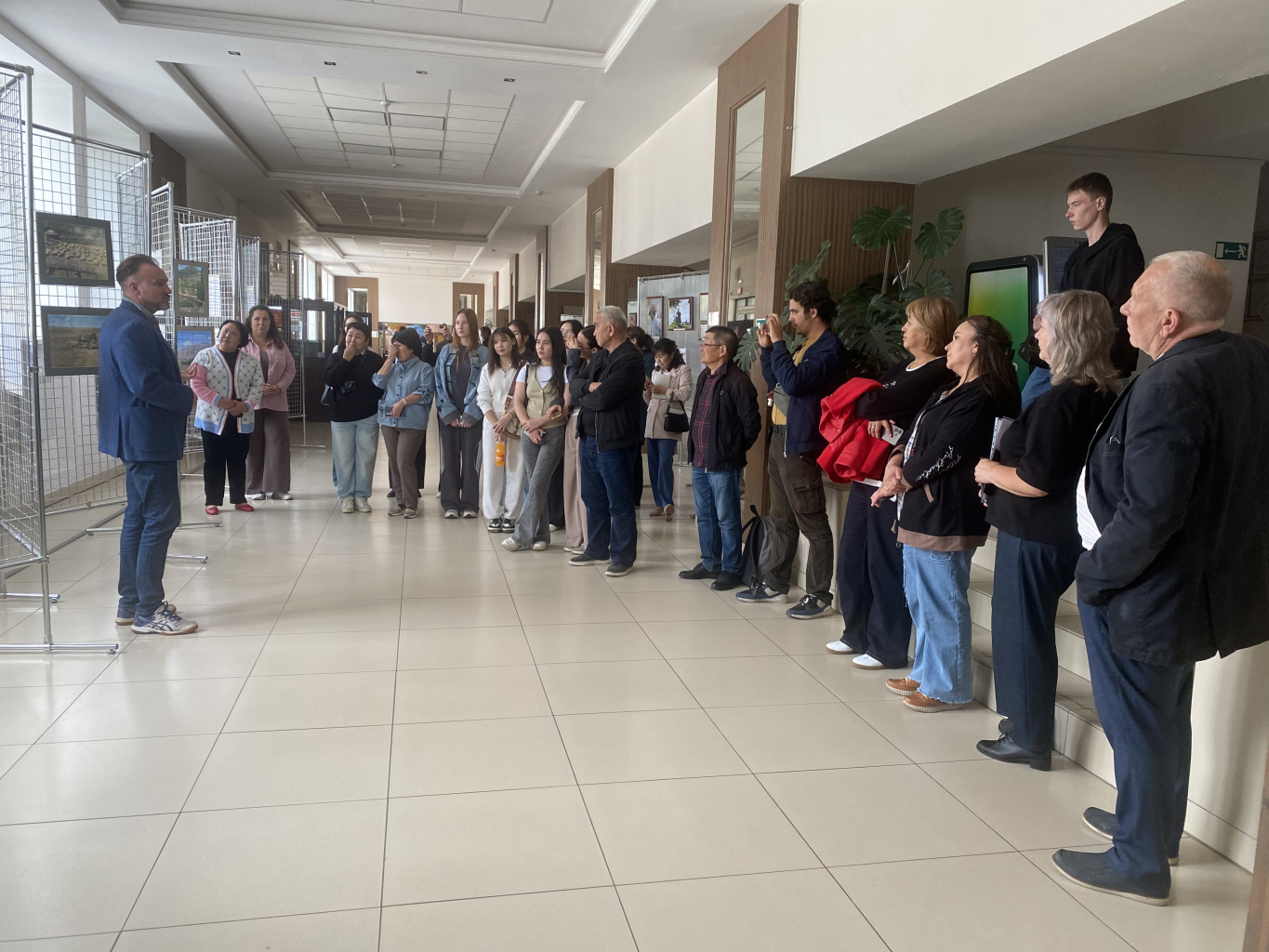 Асанканов А. А. доктор исторических наук, профессор, академик Национальной академии наук Кыргызской Республики, директор Института истории, археологии и этнологии НАН КР тепло поприветствовал участников, высказался о важности подобного рода совместных мероприятий. Назаров И. И. (руководитель экспедиции) директор ИИМО АлтГУ поблагодарил руководство вуза за душевный приём и предоставленную возможность организовать фотовыставку.